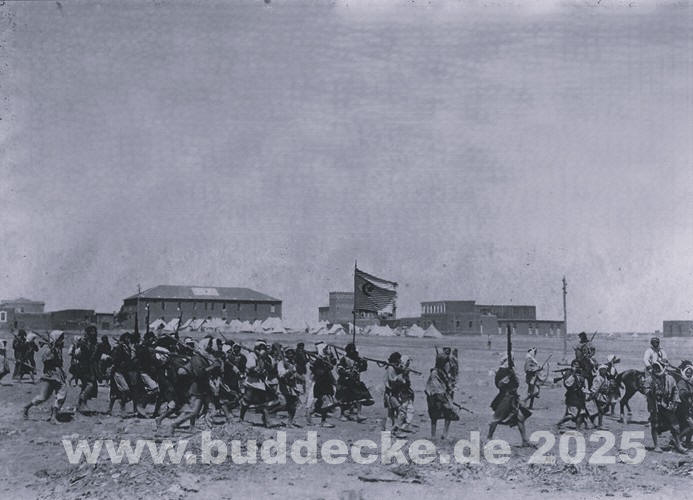 Kriegsjahr 1918, Verbündete türkische Offiziere mit Beduinenkämpfer