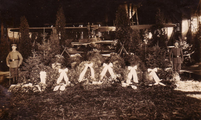Beerdigung der gefallenen Kameraden. Die Aufbahrung der 5 Särge.