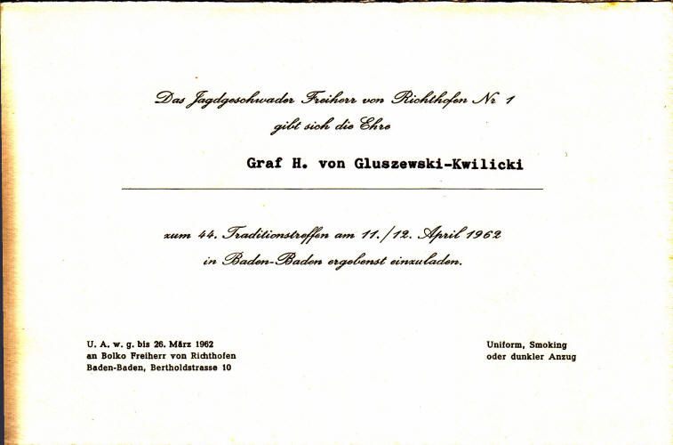 Oben das Erkennungszeichen der "Eisgrauen". Einladungskarte.