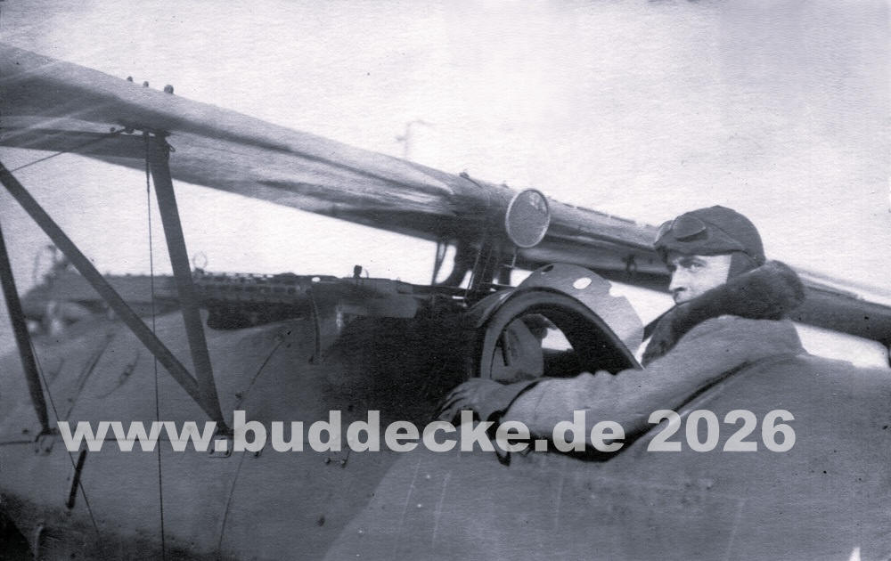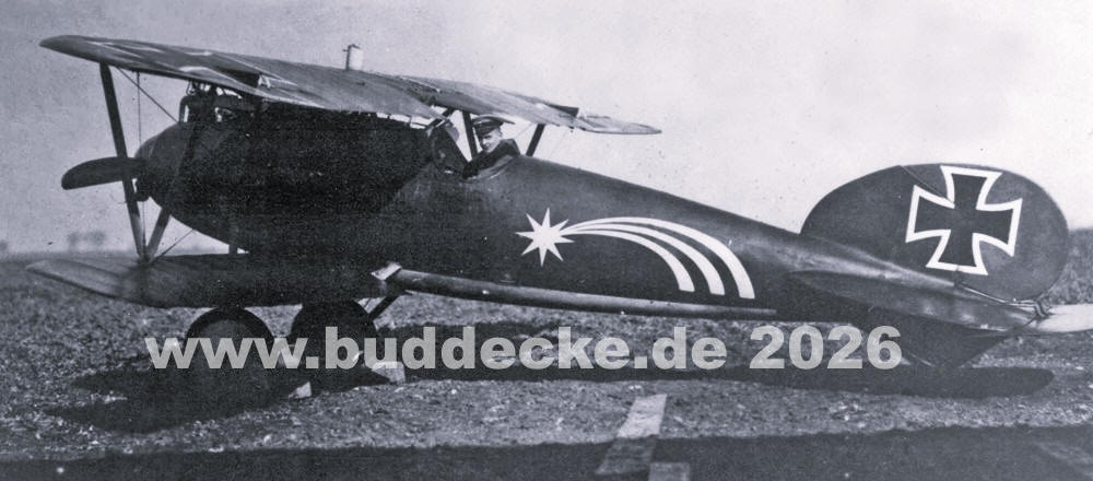 Oberleutnant Ernst Wilhelm Turck (P)(CO) in seiner Albatros D.V mit dem Kometen am Rumpf.
