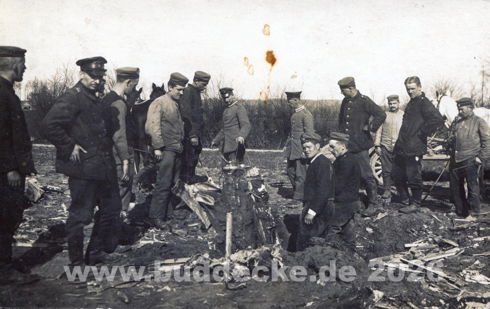 Verwundungen. Die Abteilung gibt dem Kameraden das letzte Geleit.